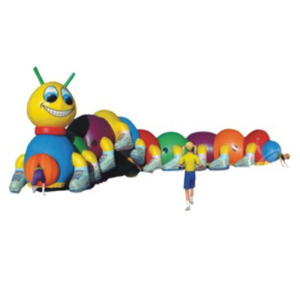 Outdoor Kids Parties Inflatable Caterpillar Tunnel with pillars and small slide inside Images |